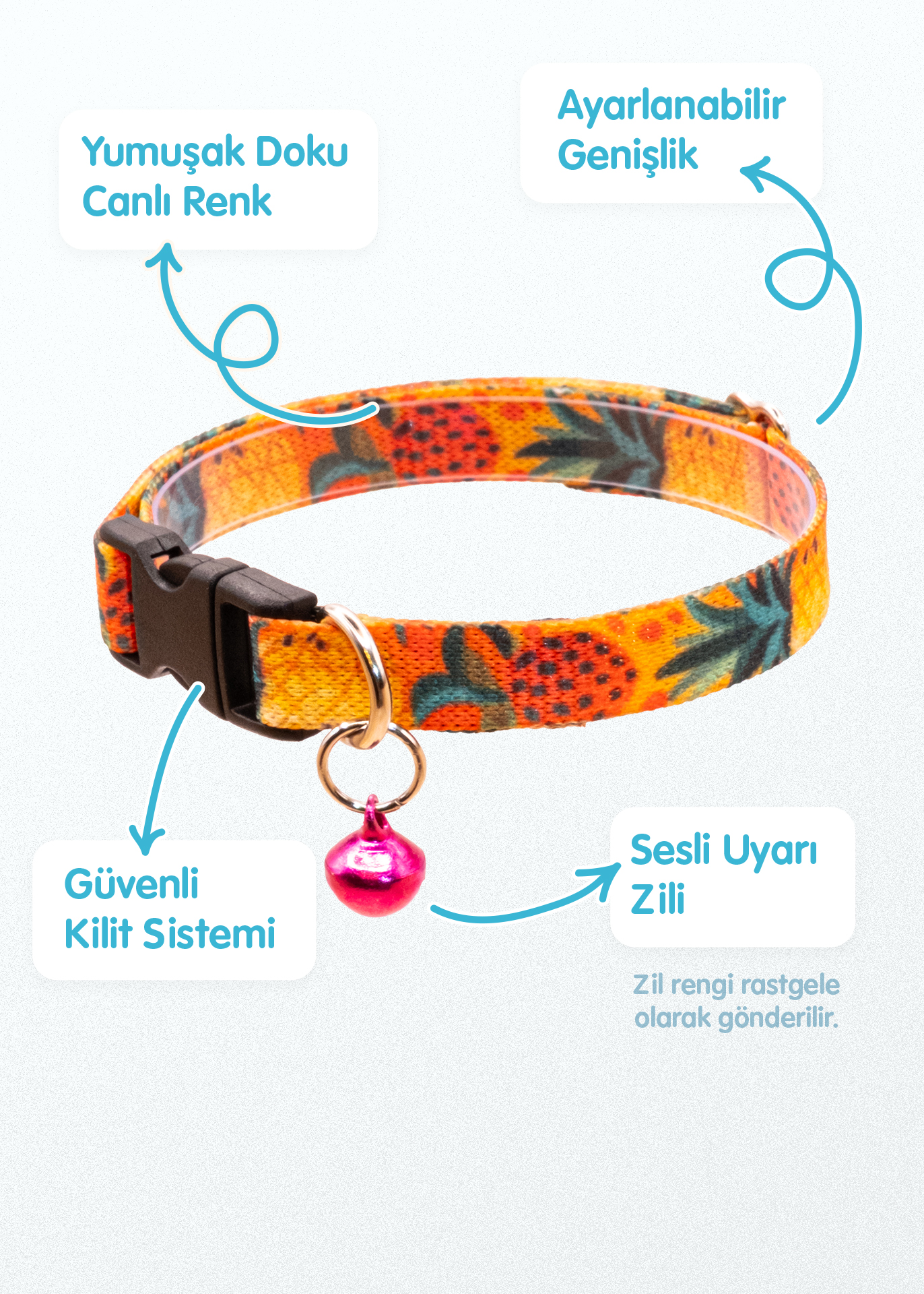 “Ananas Desenli Kedi Tasması Zilli (18-32cm)” için yorum yapan ilk kişi siz olun
