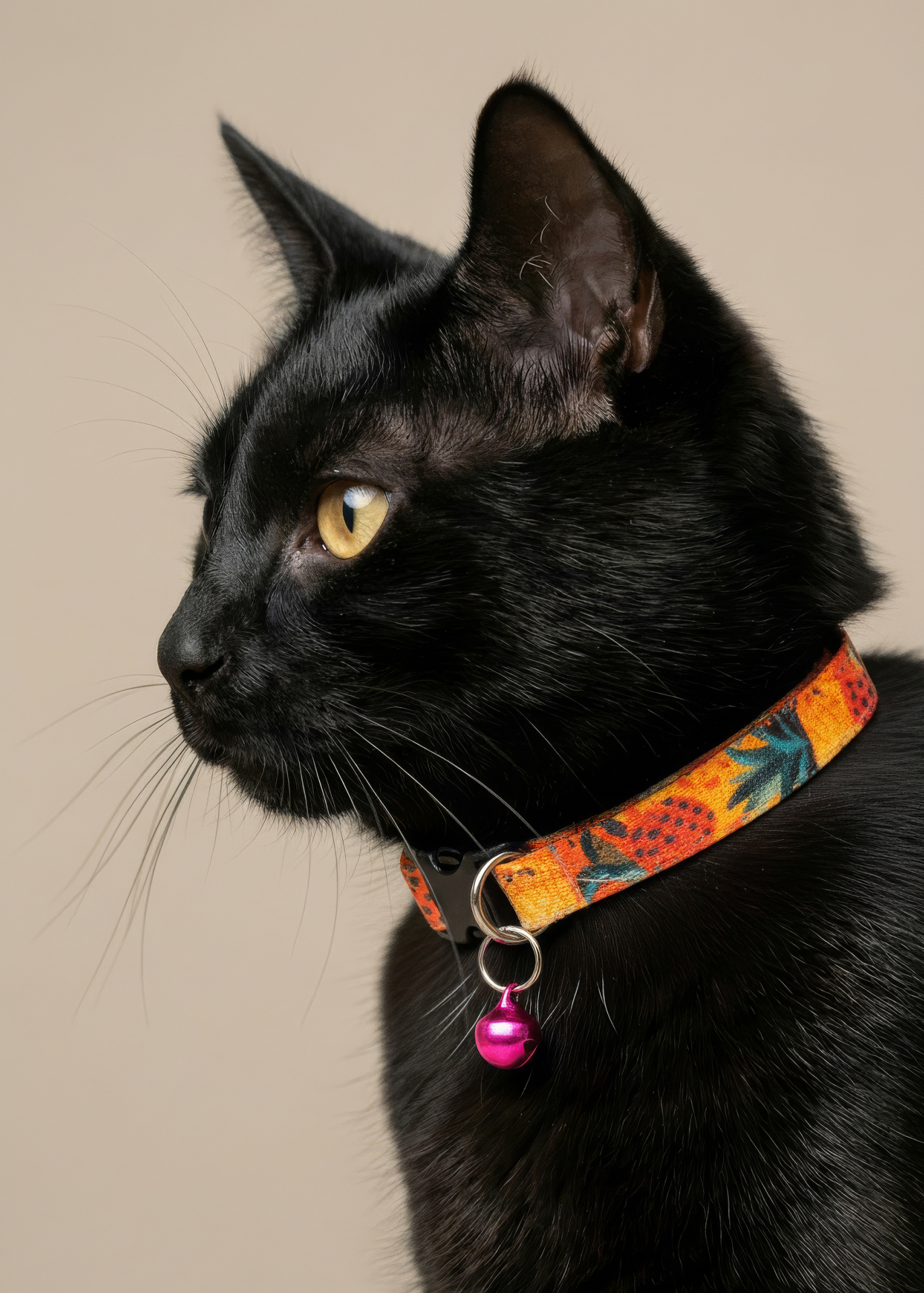 Pati Desenli Siyah Kedi Tasması Zilli (18-32cm)