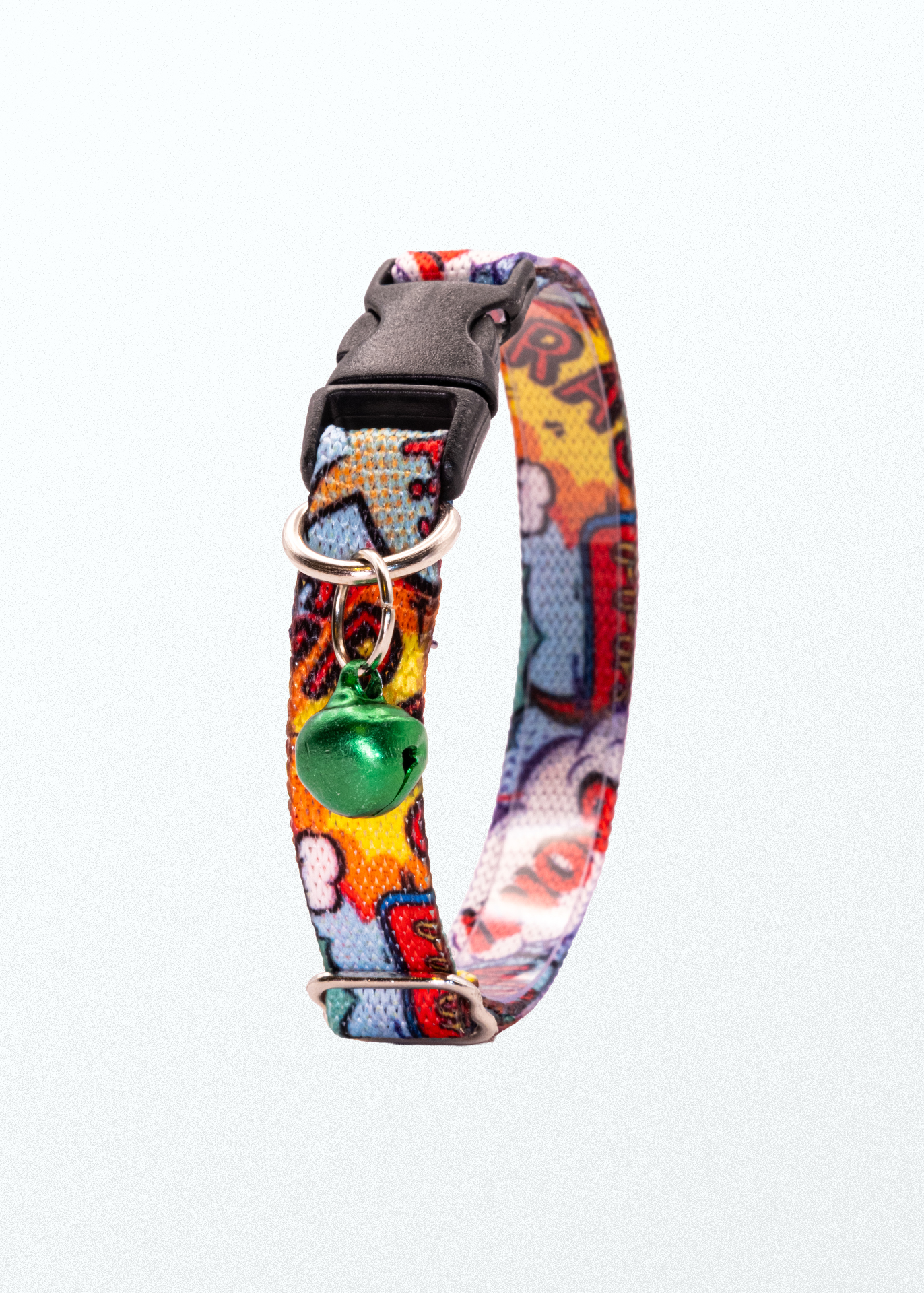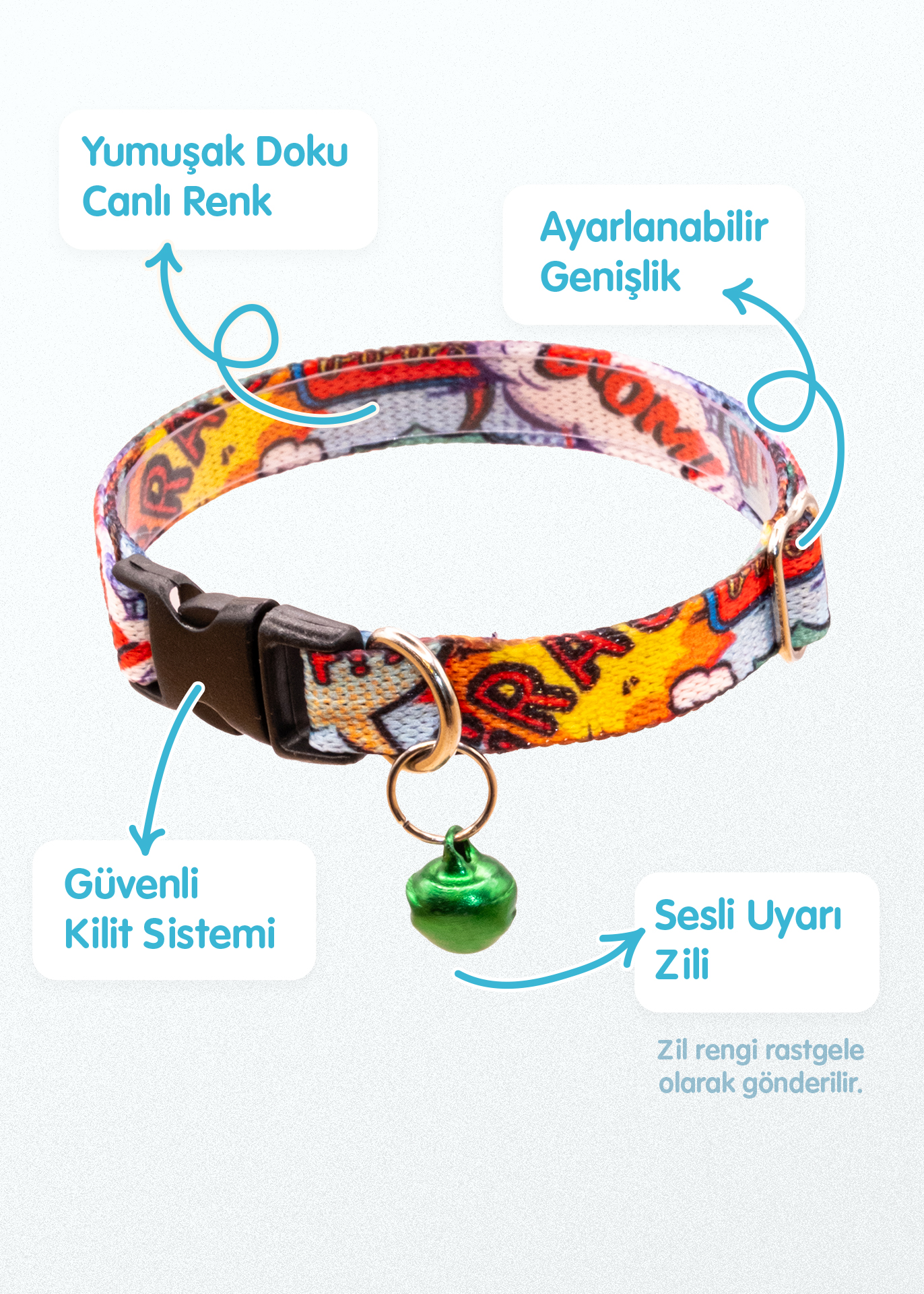 Çizgi Roman Desenli Kedi Tasması Zilli (18-32cm)