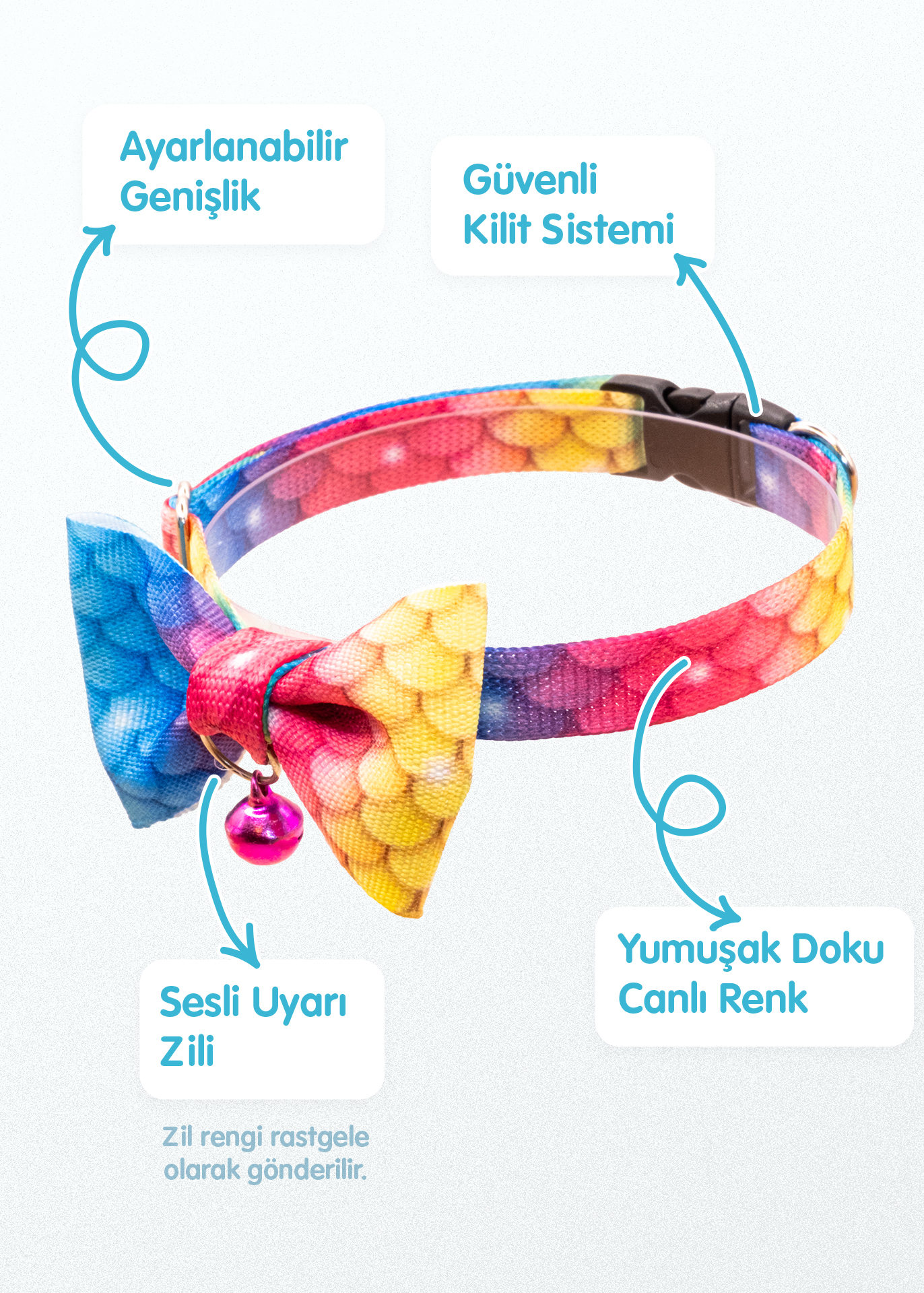 18–32 cm arası ayarlanabilir yapısı sayesinde tüm kedi türlerine uyum sağlar. Sesli uyarı zili ile hem rahat hem kontrollü kullanım sunar. İp kalınlığı 1 cm’dir. Hayvan sağlığına zararsız, yüksek kaliteli malzemelerden Türkiye’de üretilmiştir.