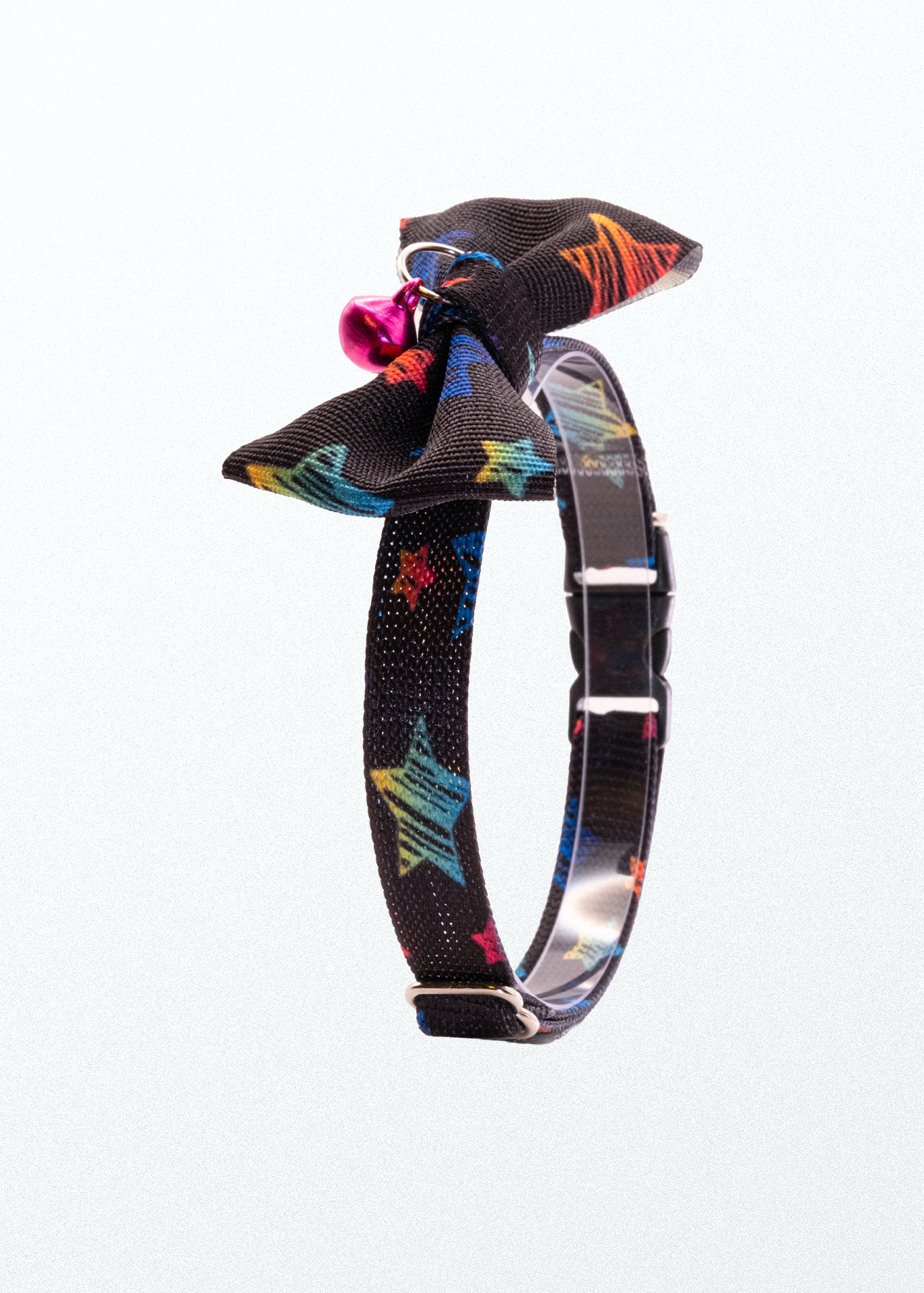 Papyonlu Yıldız Desenli Siyah Kedi Tasması Zilli (18-32cm)