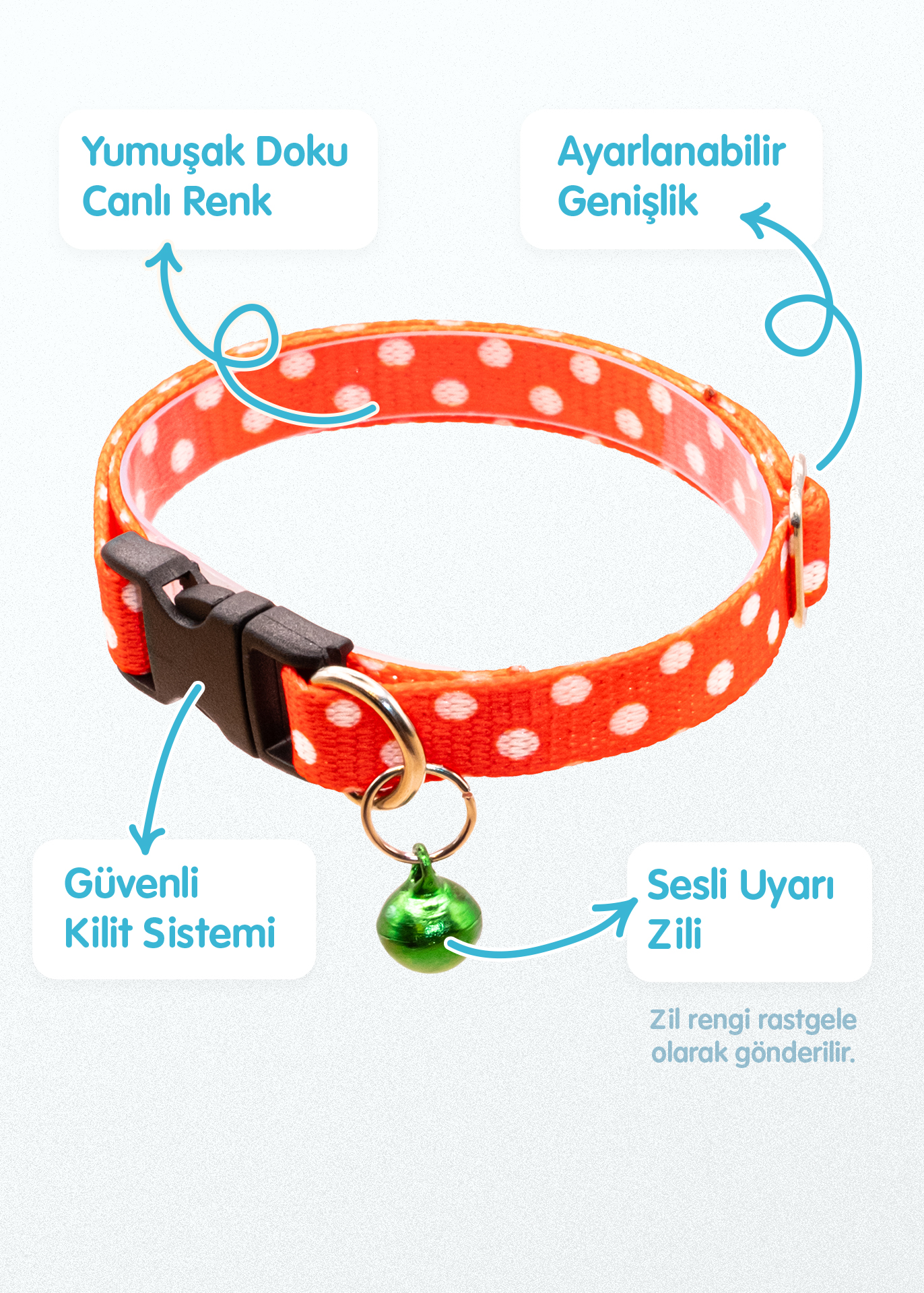 18–32 cm arası ayarlanabilir yapısı sayesinde tüm kedi türlerine uyum sağlar. Sesli uyarı zili ile hem rahat hem kontrollü kullanım sunar. İp kalınlığı 1 cm’dir. Hayvan sağlığına zararsız, yüksek kaliteli malzemelerden Türkiye’de üretilmiştir.