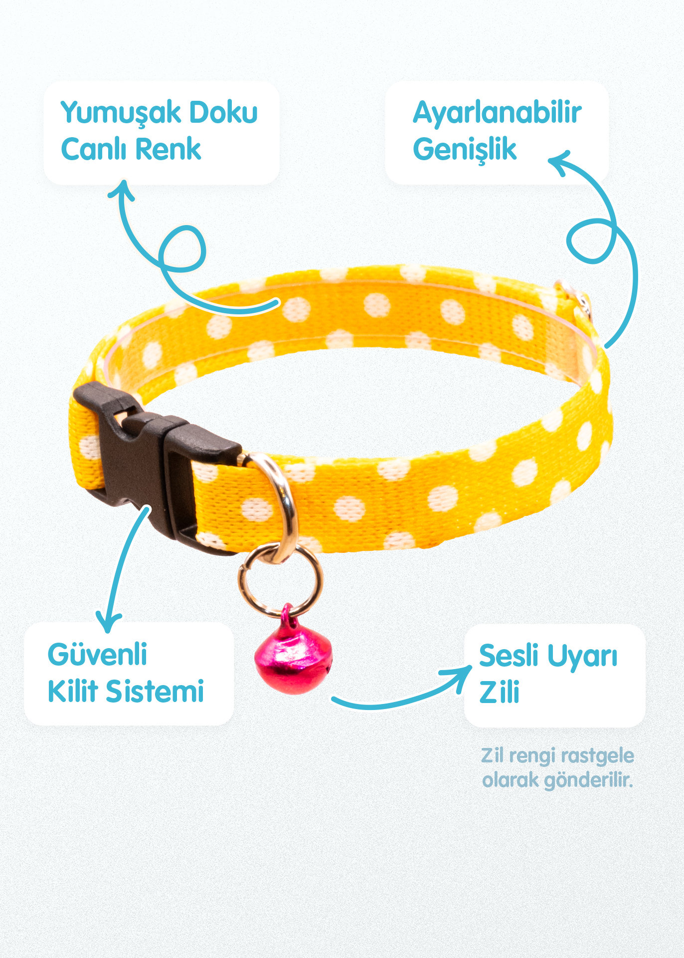 “Puantiyeli Sarı Kedi Tasması Zilli (18-32cm)” için yorum yapan ilk kişi siz olun