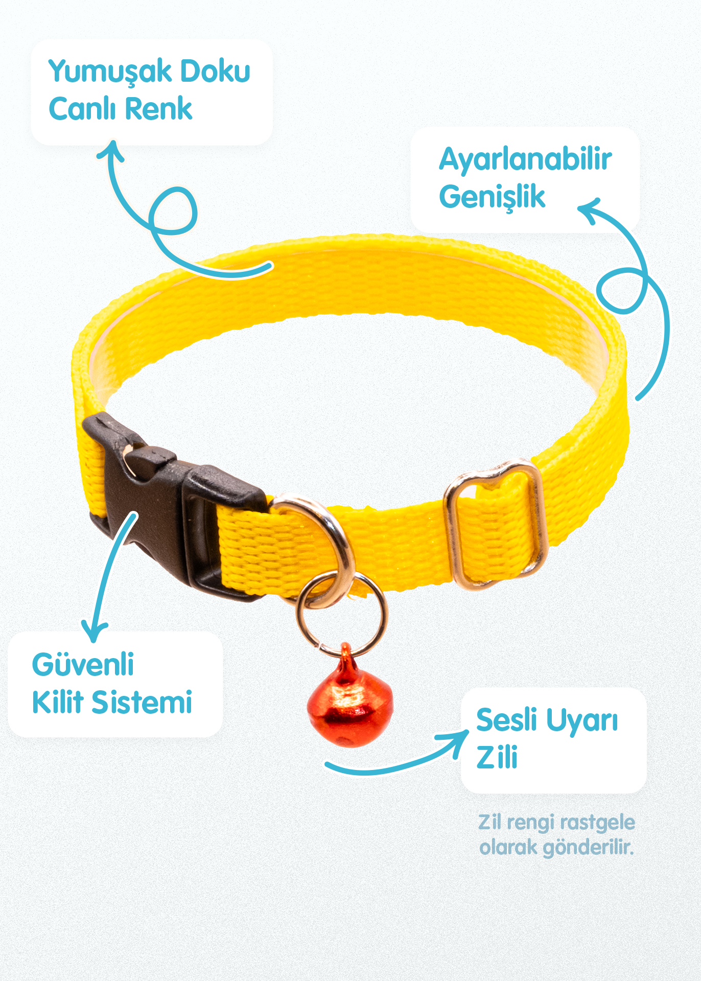 18–32 cm arası ayarlanabilir yapısı sayesinde tüm kedi türlerine uyum sağlar. Sesli uyarı zili ile hem rahat hem kontrollü kullanım sunar. İp kalınlığı 1 cm’dir. Hayvan sağlığına zararsız, yüksek kaliteli malzemelerden Türkiye’de üretilmiştir.