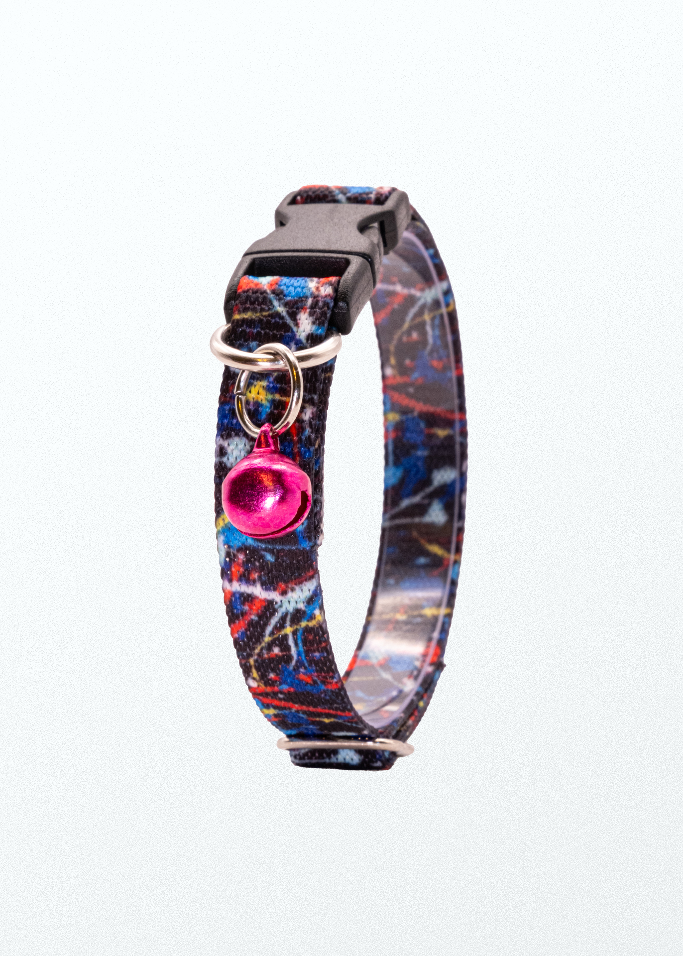 Soyut Desenli Siyah Kedi Tasması Zilli (18-32cm)