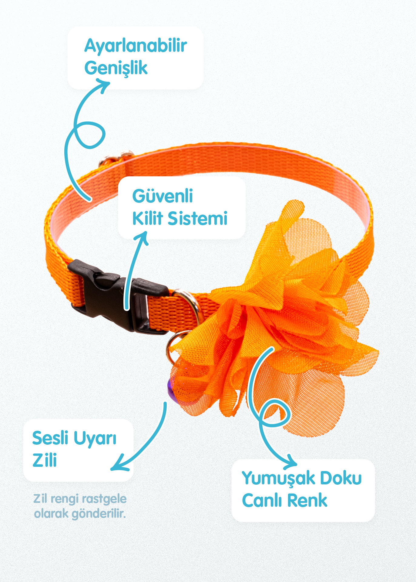 18–32 cm arası ayarlanabilir yapısı sayesinde tüm kedi türlerine uyum sağlar. Sesli uyarı zili ile hem rahat hem kontrollü kullanım sunar. İp kalınlığı 1 cm’dir. Hayvan sağlığına zararsız, yüksek kaliteli malzemelerden Türkiye’de üretilmiştir.