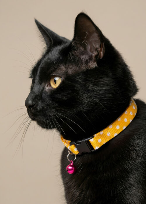 Puantiyeli Sarı Kedi Tasması Zilli (18-32cm)
