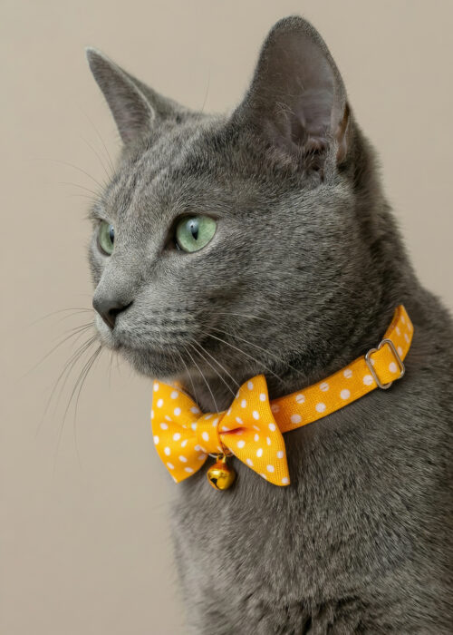 Papyonlu Puantiyeli Sarı Kedi Tasması Zilli (18-32cm)