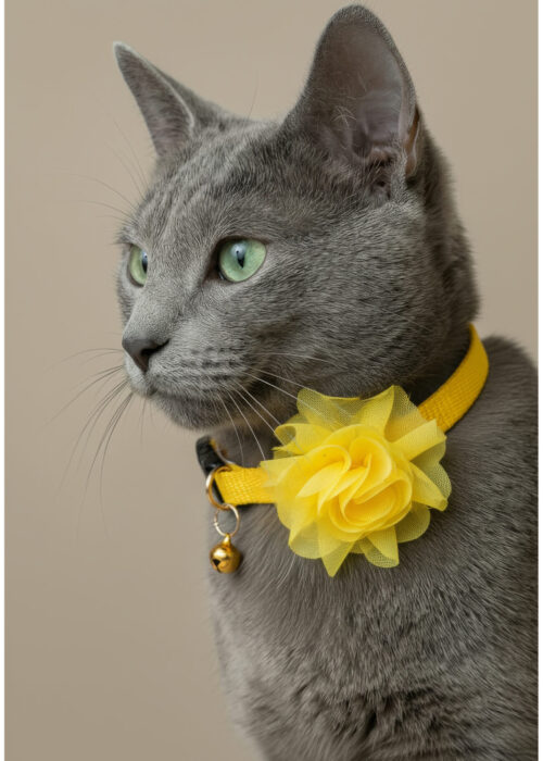Sarı Çiçekli Kedi Tasması Zilli (18-32cm)